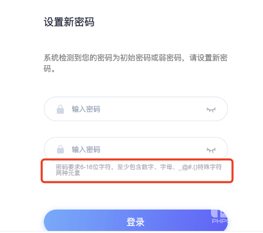 进行密码重新设置,密码设置要求请严格执行网安要求,页面中有相关提示: