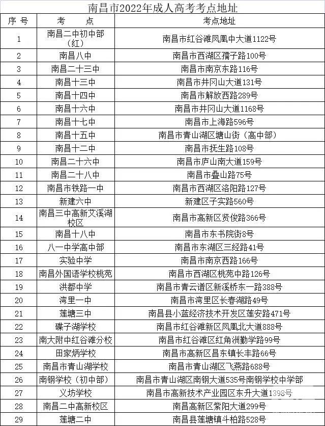 以上是关于2022年南昌成人高考考点地址的相关内容,想获取更多关于江西成人高考的相关资讯,如江西成人高考答疑、分数线、报考条件、报名时间、考试科目、成绩录取查询等,敬请关注江西成考网