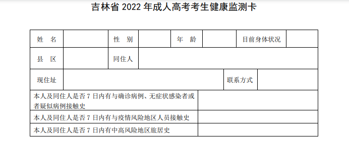 上一篇:2022年吉林省成人高考疫情防控须知 下一篇:2022年吉林成人高考疫情防控与诚信考试考生承诺书